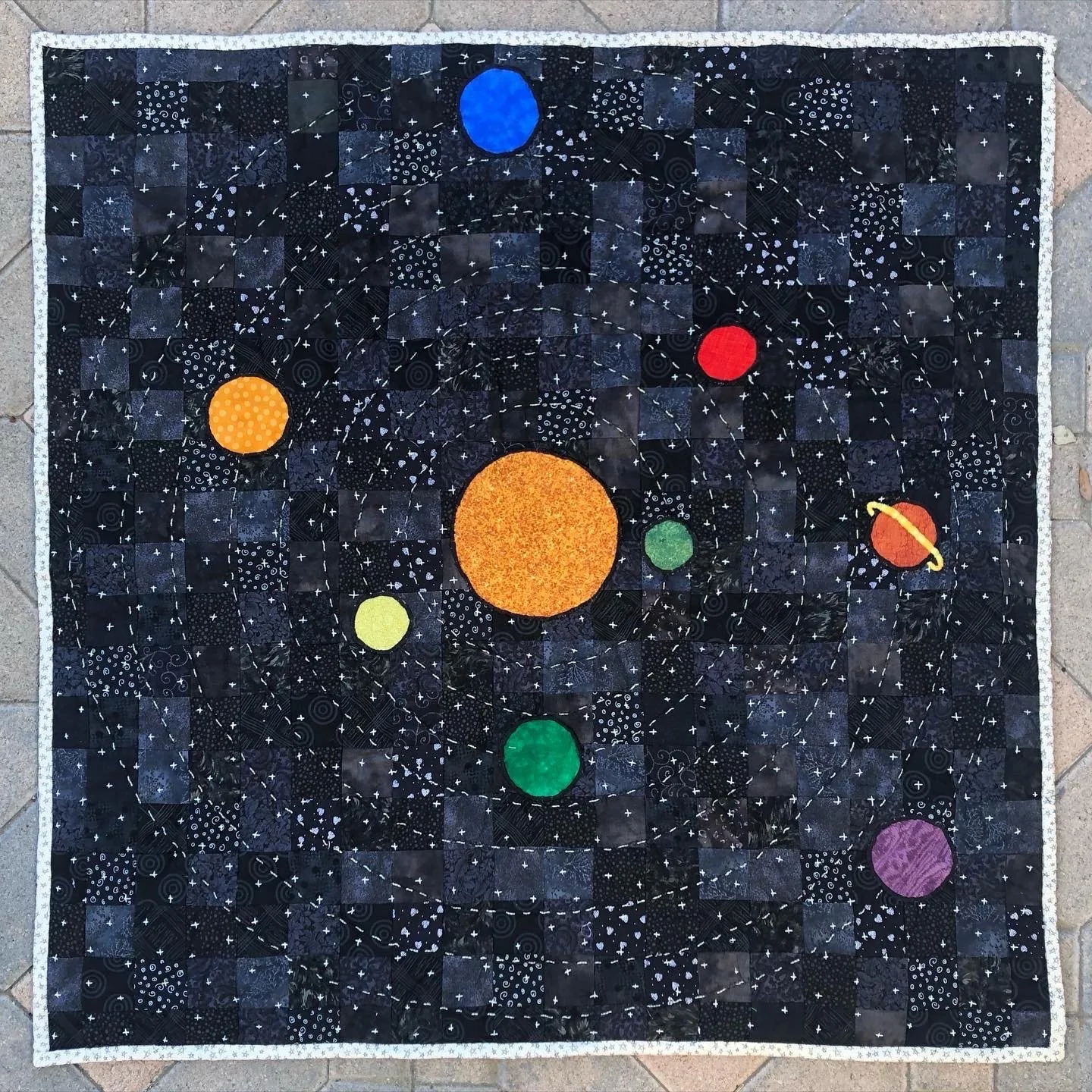 By creating a grid of black fabrics (rather than one large piece) for the sky, I created a depth that suggest far-off galaxies. The clouds, well, the clouds are very cute. If, one day, my friends child becomes an astrophysicist, they’ll have me to thank.